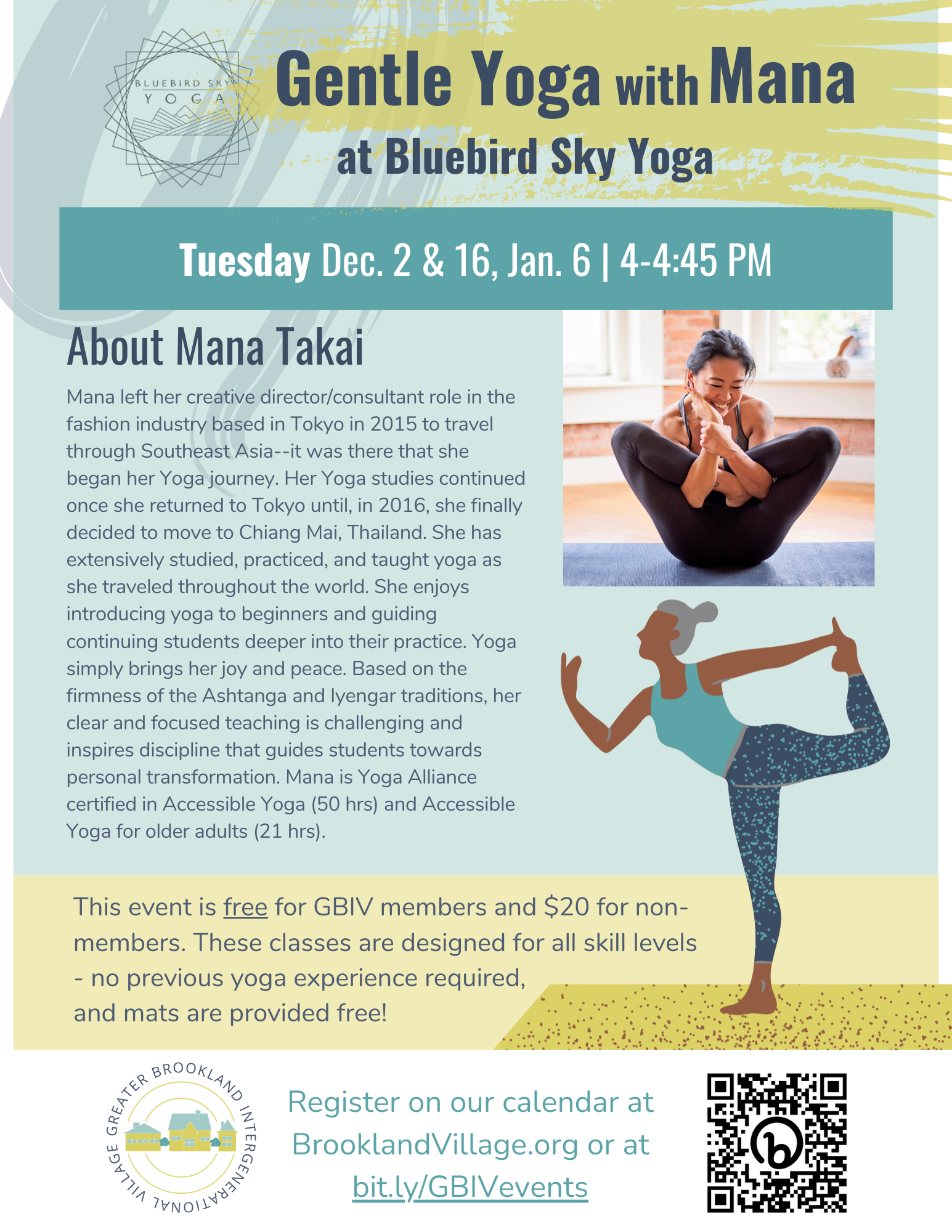 Join Bluebird Sky Yoga instructor, Mana Takai, for a gentle yoga class!